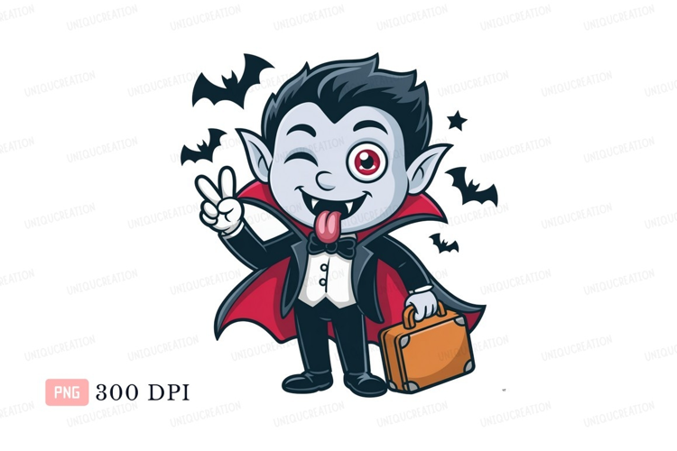 Similar Design Products to Cartoon vampire winking holding suitcase halloween