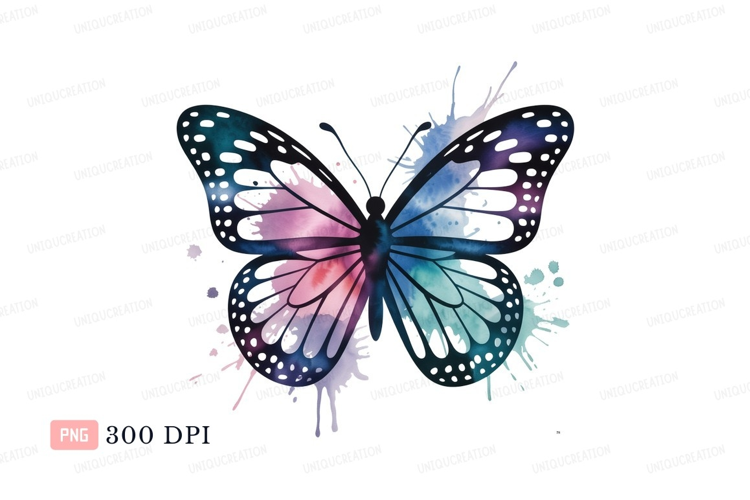 Watercolor Black Pink Splatter Purple Blue Butterfly Insect Teal Wings