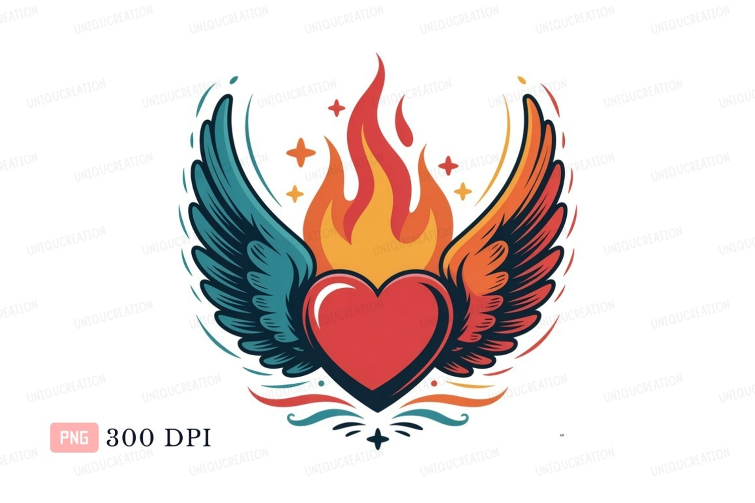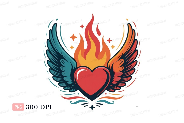 Fiery winged heart emblem wings fire