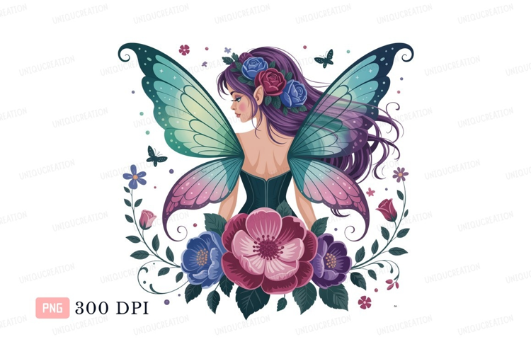 Similar Design Products to Purple haired fairy with butterfly wings and flowers