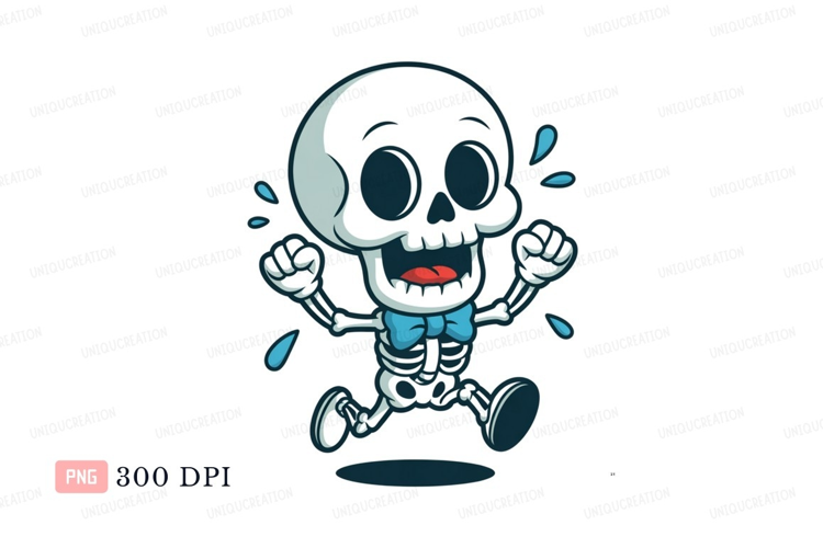Similar Design Products to Cartoon skeleton running with blue bow tie image