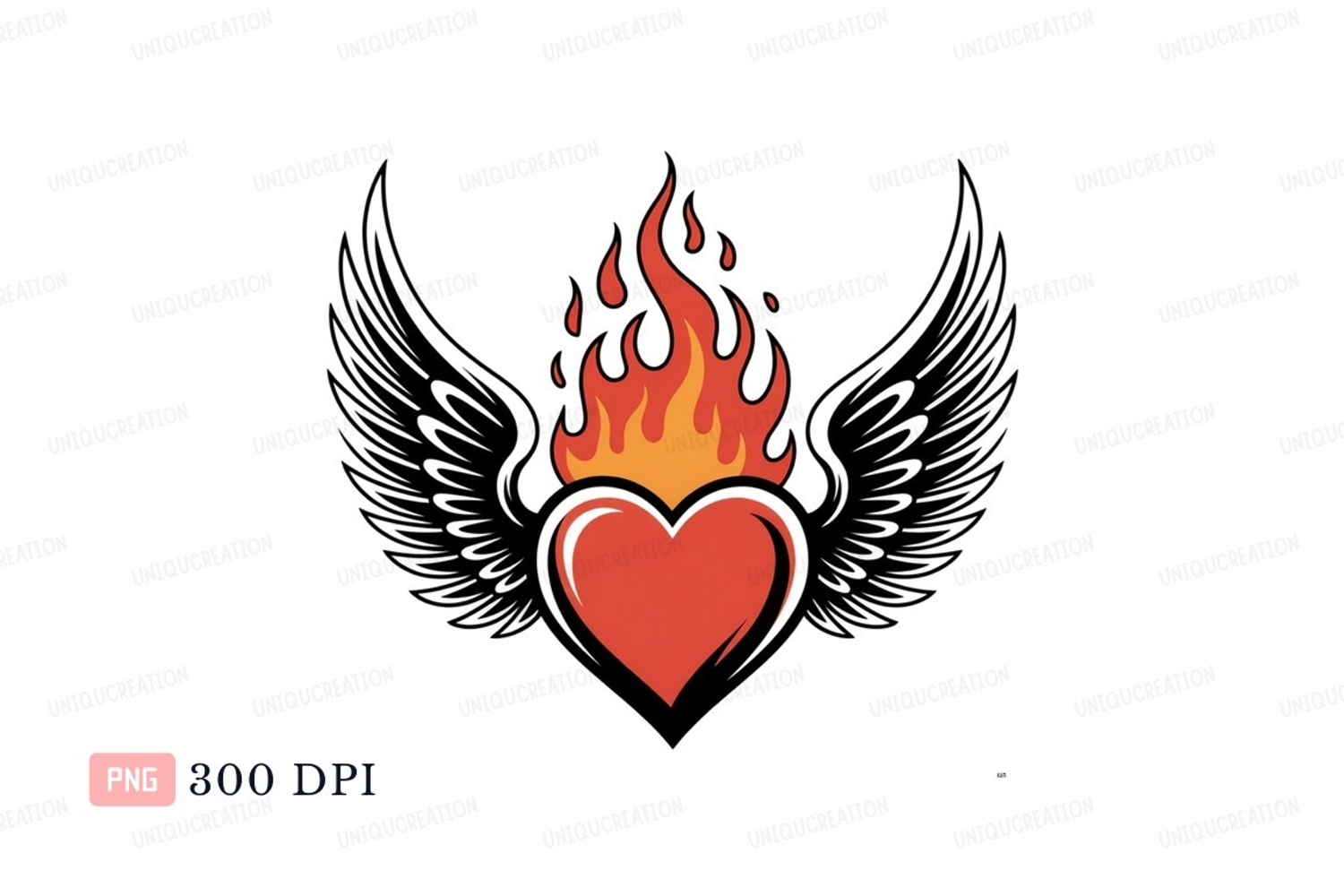 Symbol Love Black Heart Orange Red Fire Wings Flames Passion