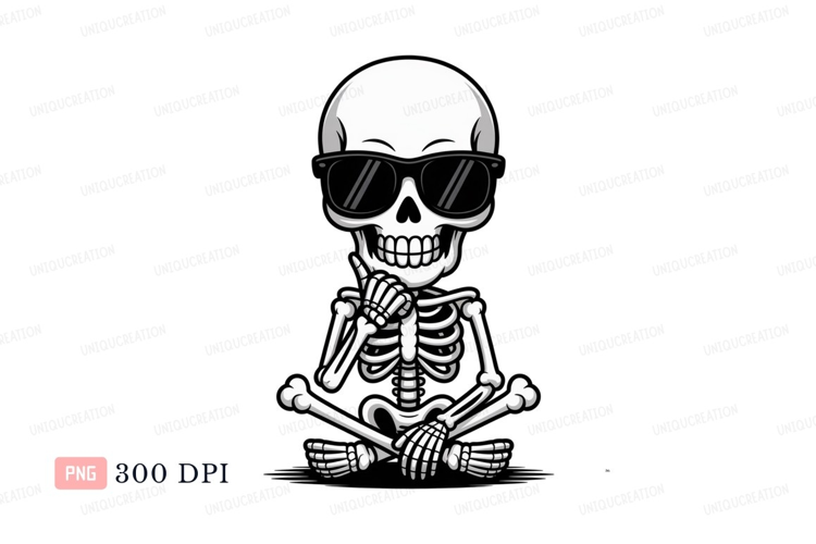 Illustration Cartoon Cool Black White Skeleton Bones Sunglasses Thinking Creepy