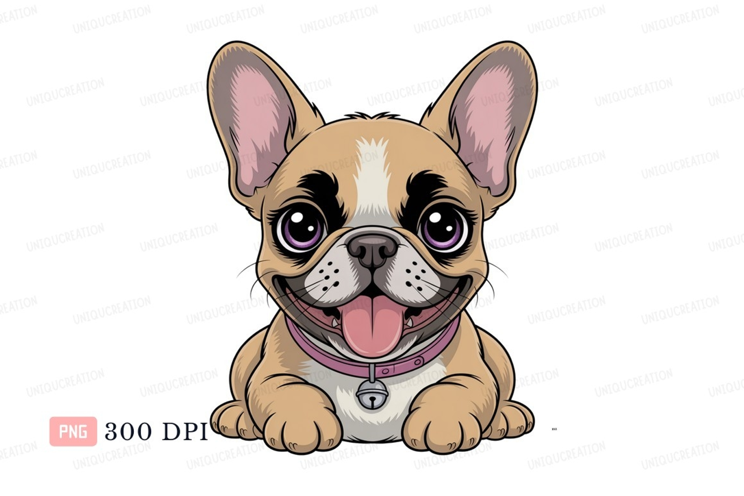 Happy French Bulldog With Big Eyes puppy cartoon example image 1