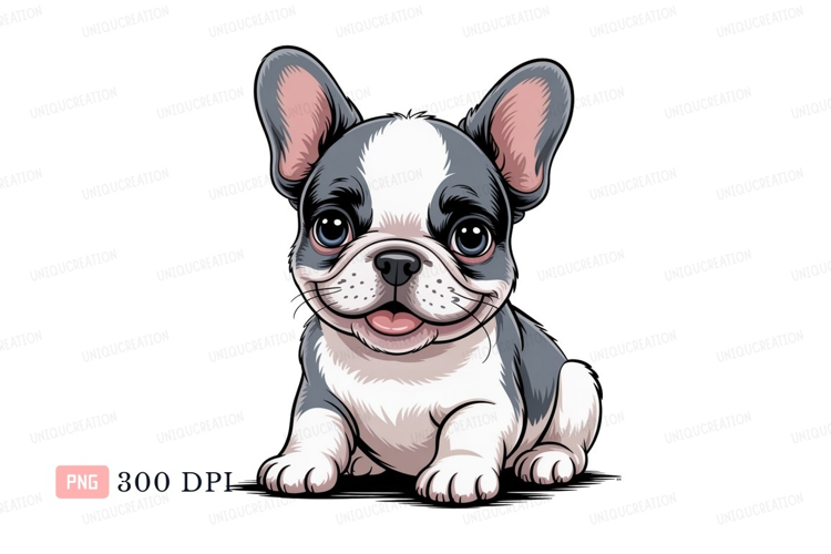 Illustration Cartoon Animal French Black Cute Pet Puppy Dog Bulldog