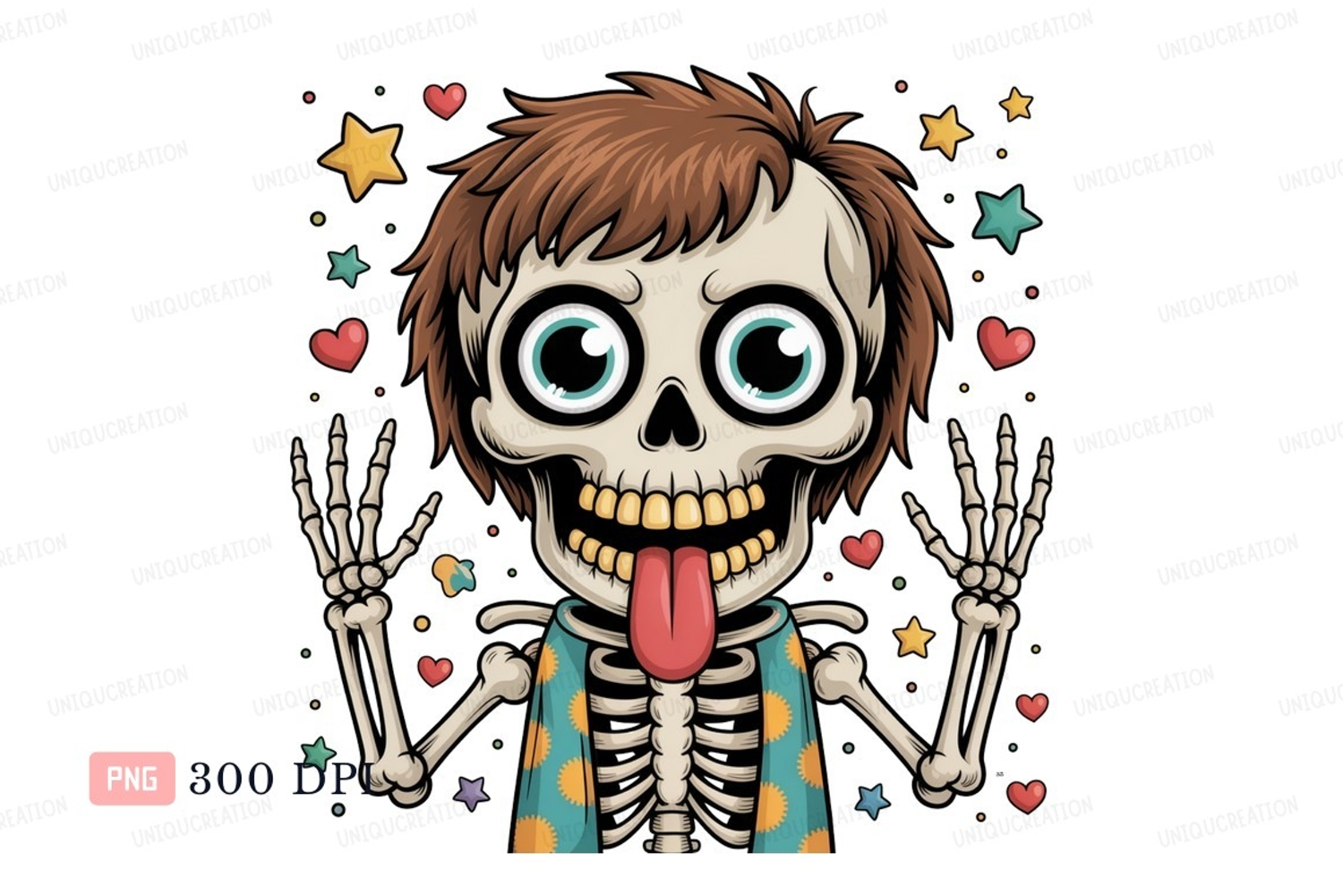 Cartoon skeleton with tongue out halloween spooky example image 1