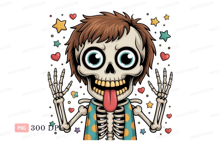 Cartoon Funny Halloween Big Spooky Skeleton Eyes Stars Out Tongue
