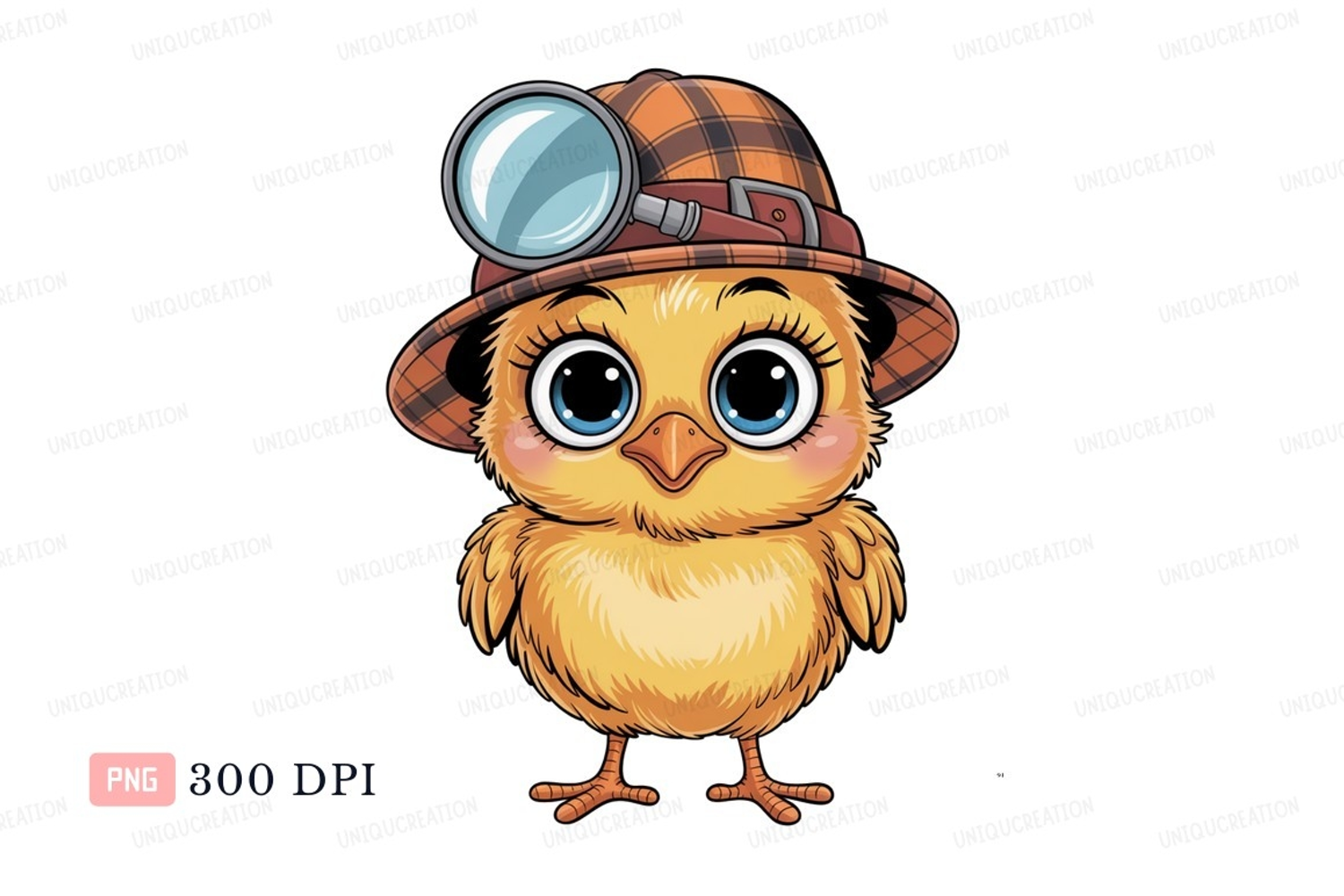 Cute Blue Yellow Hat Glass Eyes Detective Chick Curious Magnifying