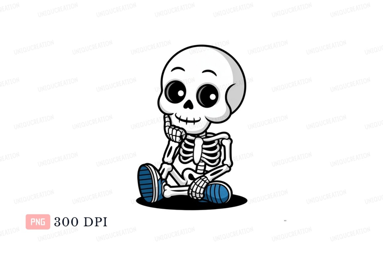 Cartoon Black Cute Skull Blue White Skeleton Costume Bones Thinking