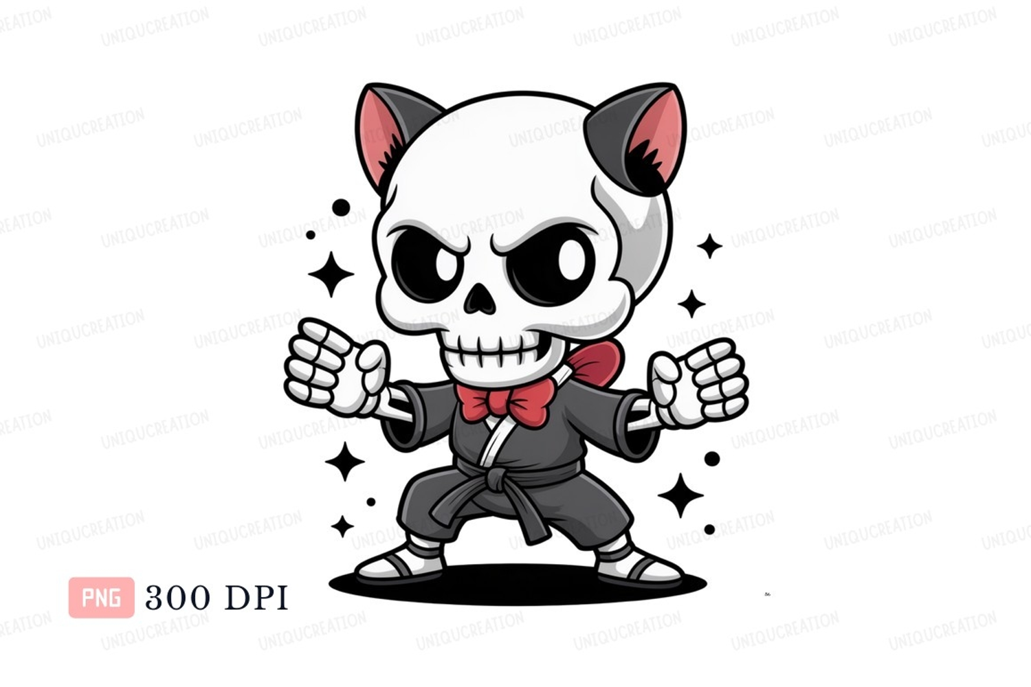 Similar Design Products to Cartoon skeleton martial artist with cat ears image
