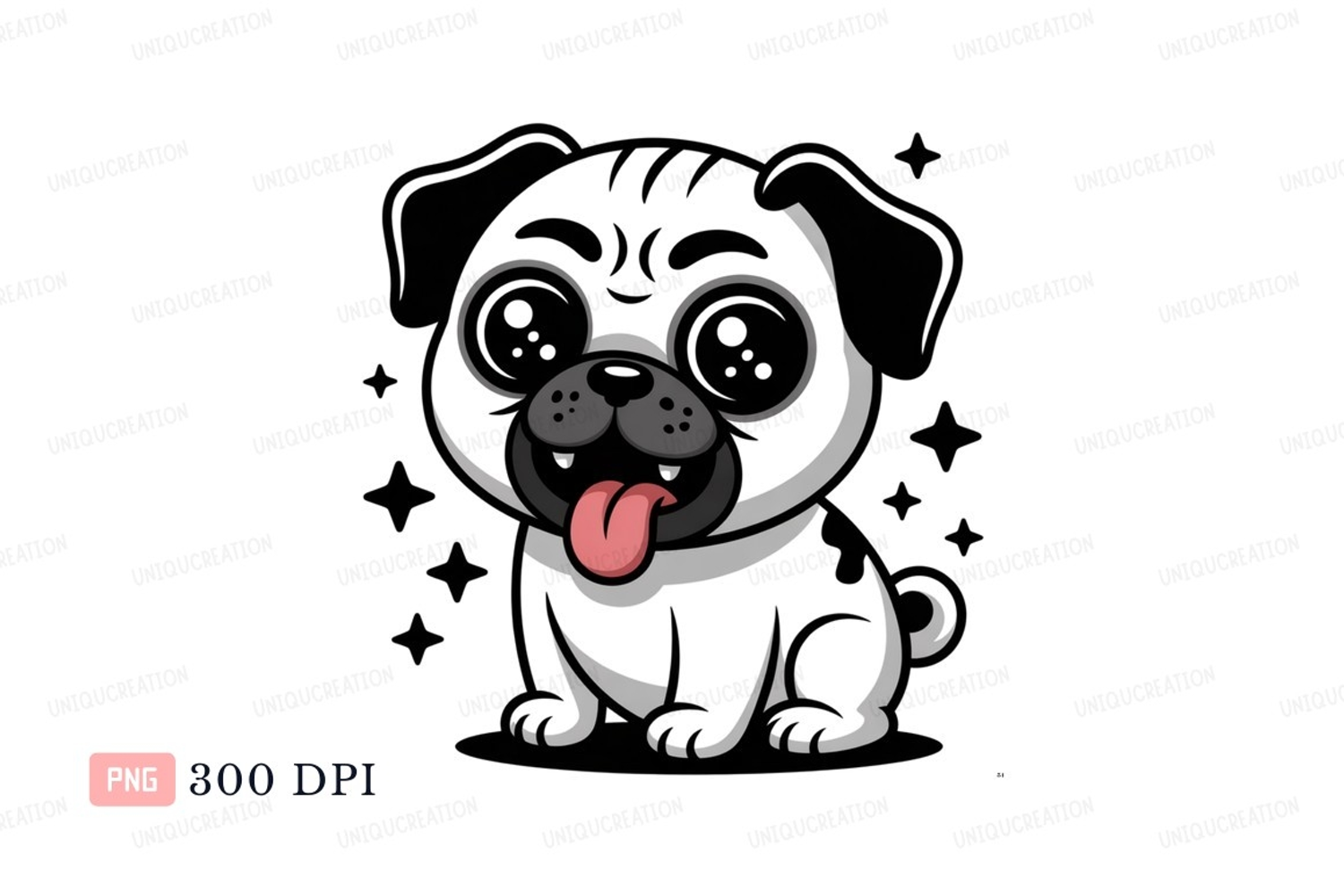 Cartoon French Black Pink White Grey Dog Out Tongue Bulldog
