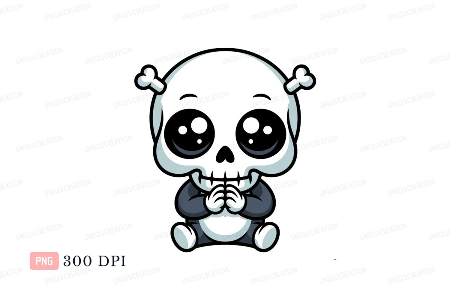 Character Cartoon Black Cute Skull Blue Sitting White Bones Praying
