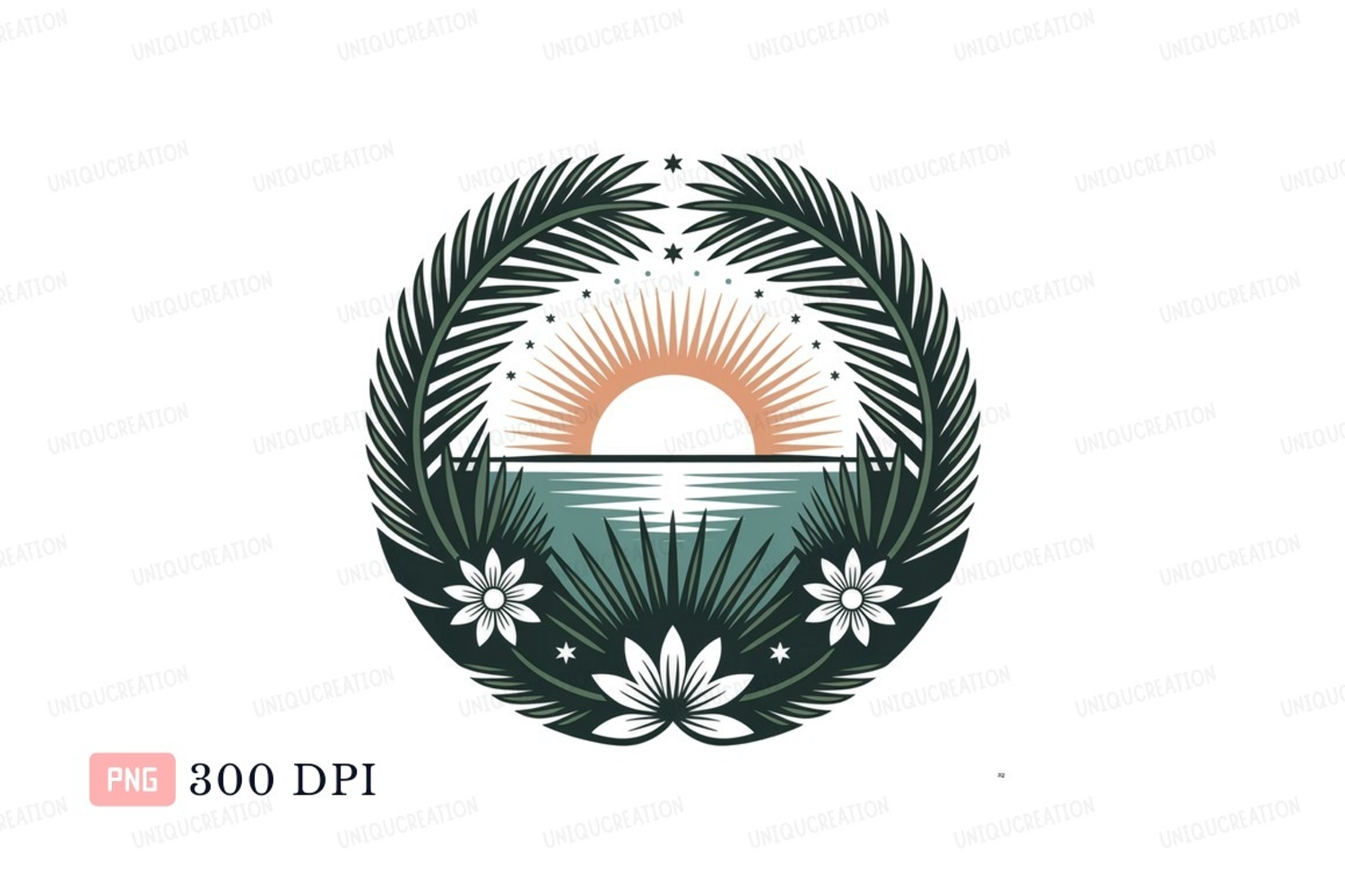Illustration Design Ocean Nature Water Leaves Sunset Tropical Palm Reflection