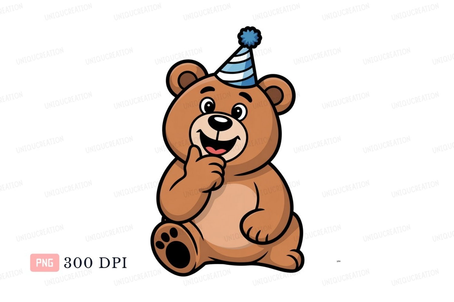 Cartoon Party Happy Celebration Bear Brown Blue Joy Hat White