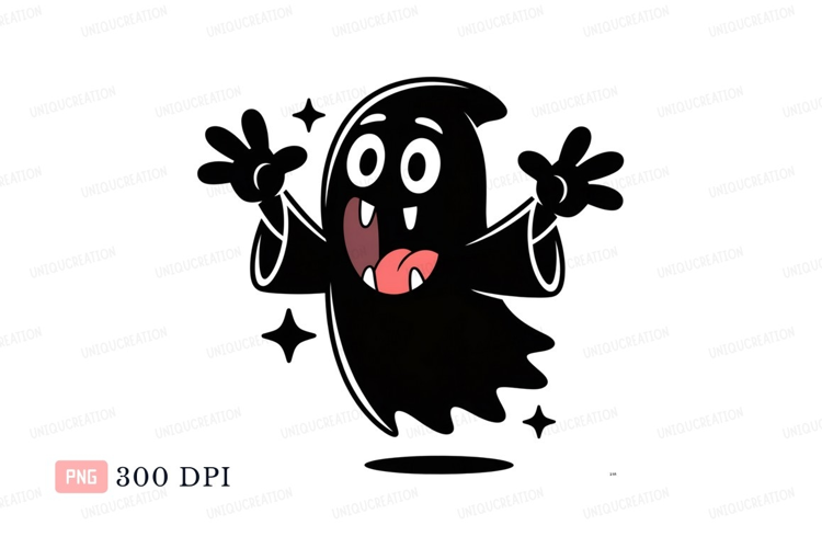 Character Cartoon Fun Playful Halloween Black Pink Spooky Ghost Tongue