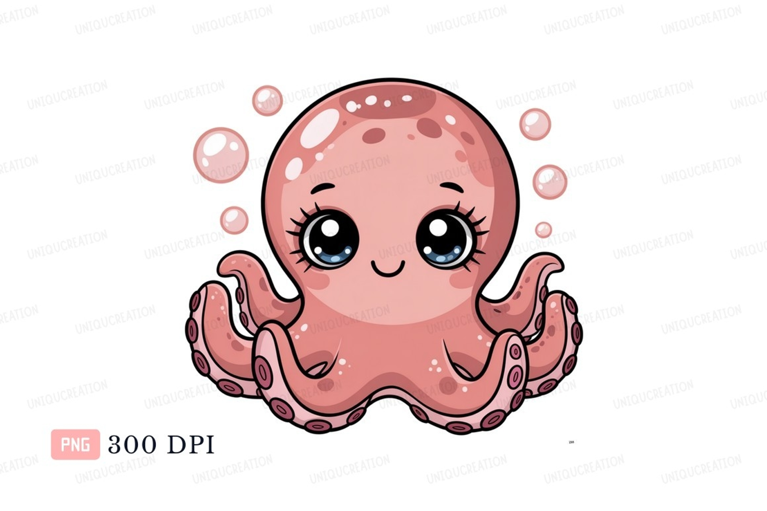 Cartoon Animal Cute Pink Ocean Sea Bubbles Marine Octopus Creature