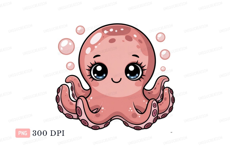 Cute pink octopus with bubbles cartoon example image 1