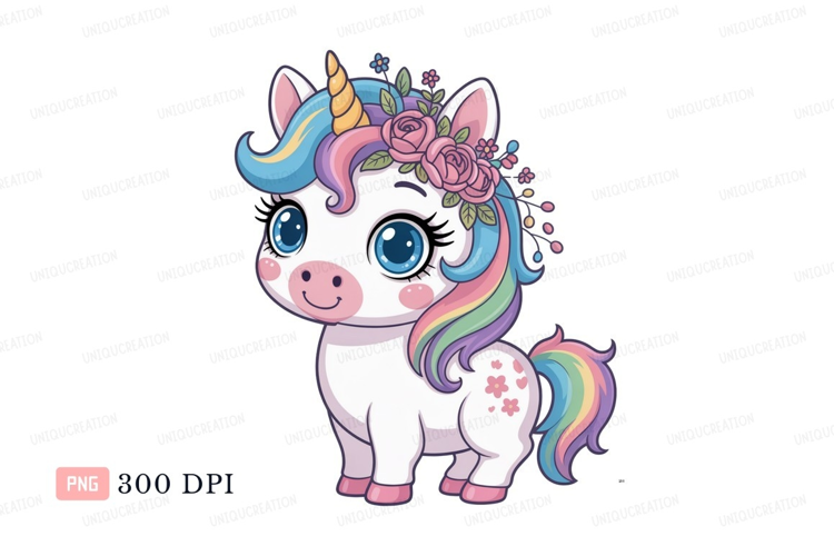 Cute unicorn with rainbow mane and floral crown tail example image 1