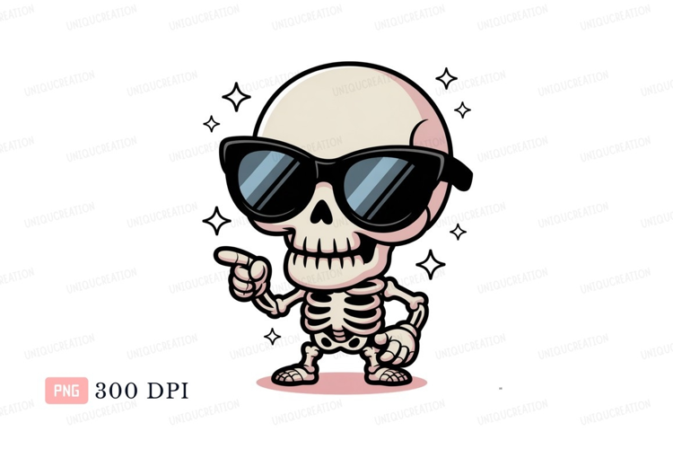 Illustration Cartoon Cool Black Pink Bone White Skeleton Sunglasses Pointing