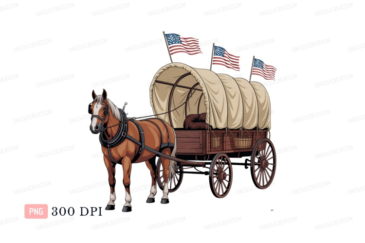 Vintage Western American Travel History Horse Transport Flag Wagon Cart