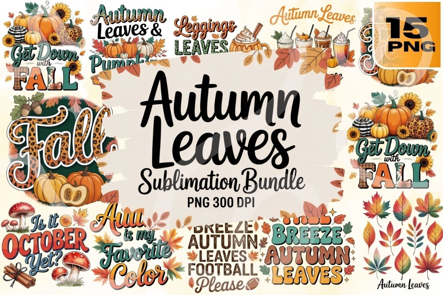 Celebrate sweater weather with this Autumn Leaves Sublimation Bundle! Featuring 15 high-resolution PNG files, this collection blends warm seasonal vibes with playful fall-themed quotes—think “Get Down with FALL,” “Leggings Leaves Lattes,” “Autumn is My Favorite Color,” and “Is it OCTOBER Yet?” With pumpkins, leaves, cozy typography, and rustic textures, each design is perfect for T-shirts, mugs, tote bags, tumblers, planners, and autumn merch.