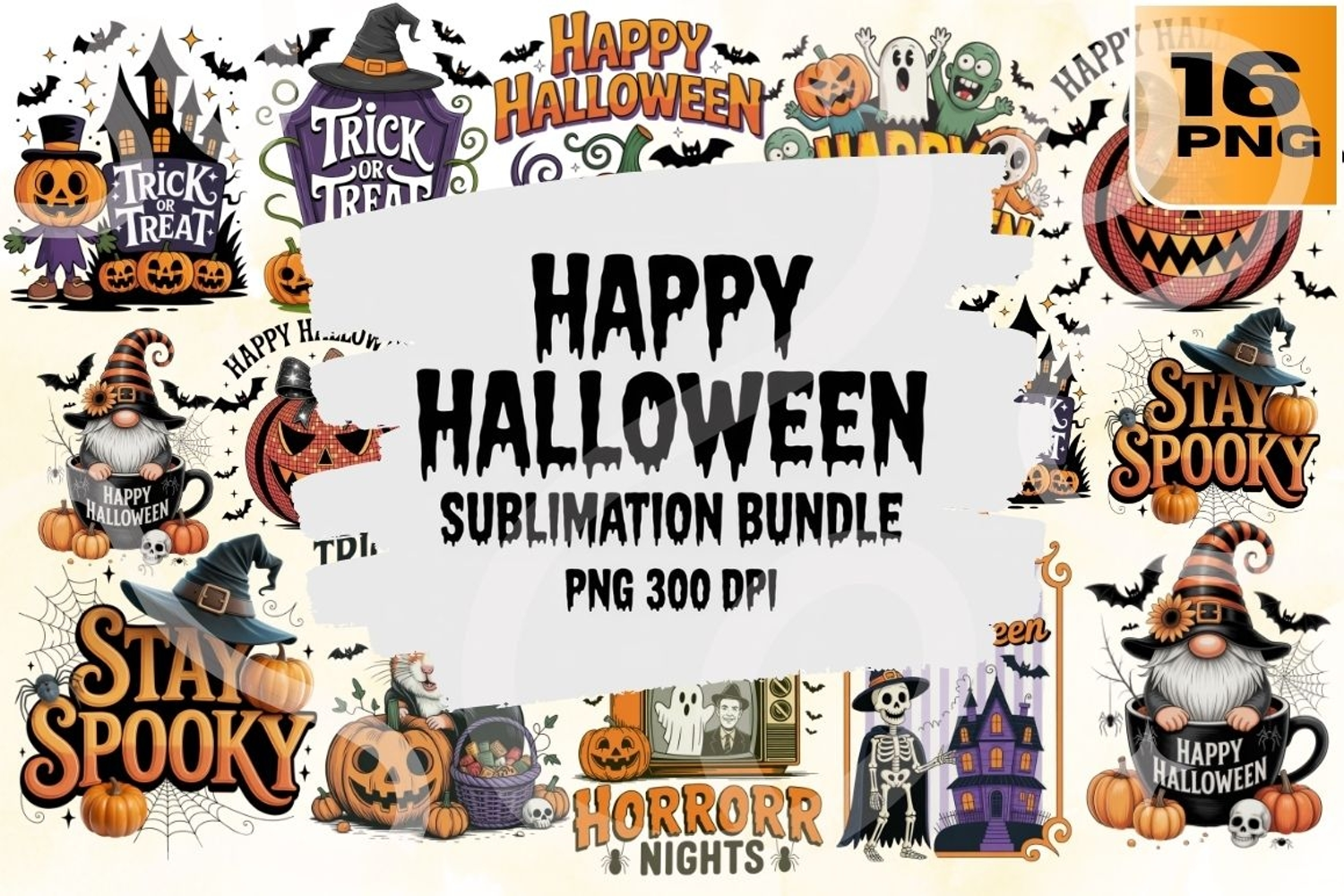 Celebrate fright night with flair using this Happy Halloween Sublimation Bundle! Featuring 16 high-resolution PNG files, this collection delivers festive punchlines like “Trick or Treat,” “Stay Spooky,” “Horror Nights,” and “Happy Halloween.” With colorful illustrations of pumpkins, witches, ghosts, skeletons, haunted houses, and more, each design is perfect for T-shirts, mugs, tote bags, tumblers, and Halloween merch with playful or spooky vibes.