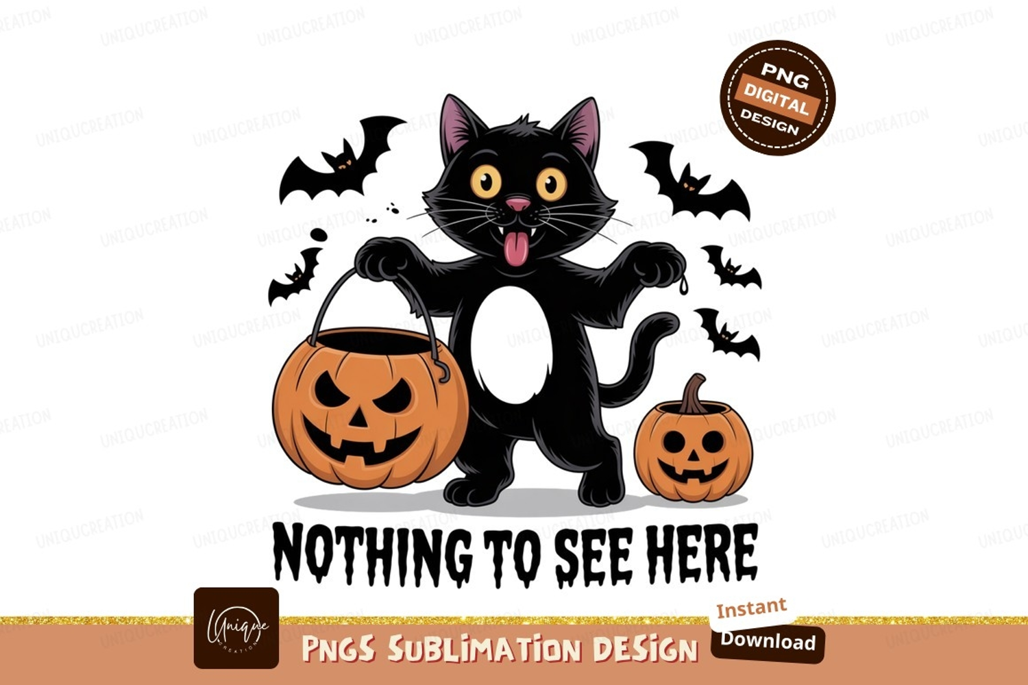 Black cat holding pumpkin bucket with jack o lantern example image 1