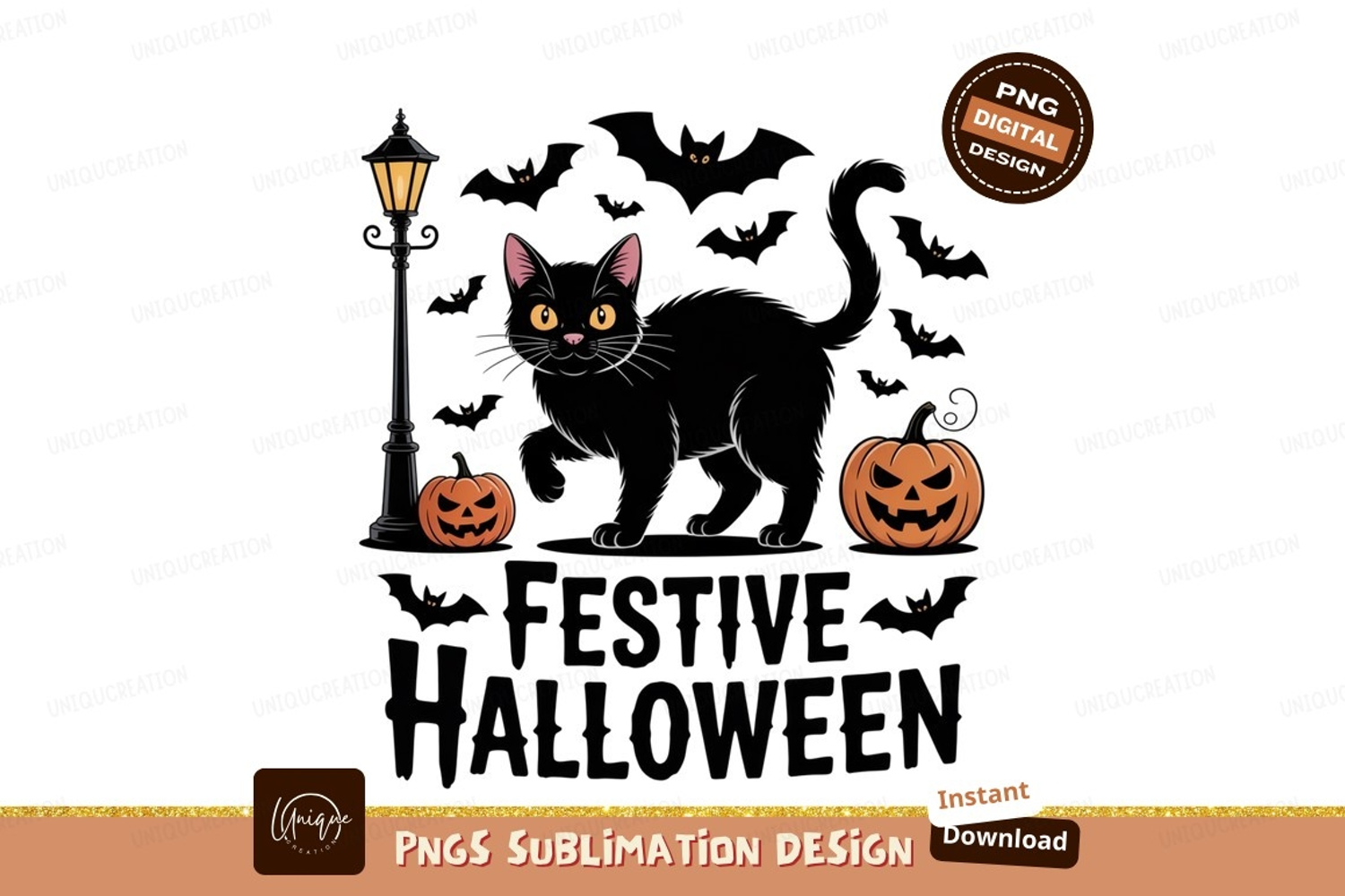 Black cat pumpkin lamp Halloween jack lantern example image 1