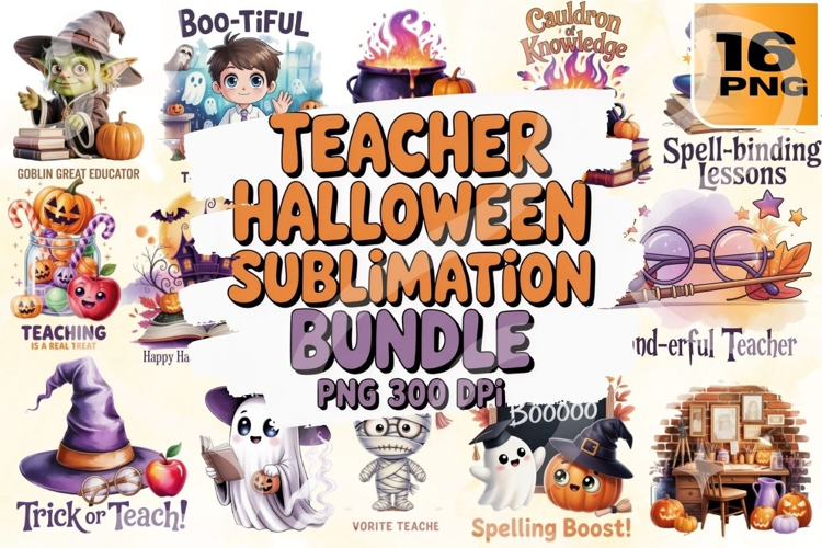 Make the classroom spooky and fun with this Teacher Halloween Sublimation Bundle! Featuring 16 high-resolution PNG files, this collection combines festive Halloween charm with teacher-inspired quotes—think “Goblin Great Educator,” “Cauldron Knowledge,” “Spell-Binding Lessons,” “Wand-erful Teacher,” and “Trick or Teach!” With witches, ghosts, pumpkins, cauldrons, and playful school motifs, each design is perfect for T-shirts, mugs, tote bags, tumblers, classroom decor, and Halloween merch for educators.