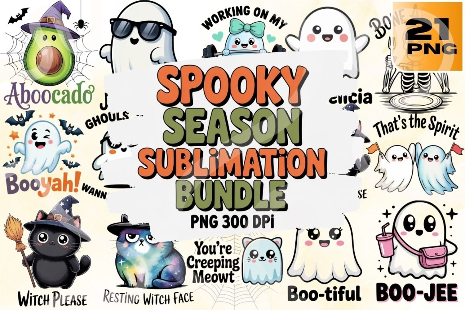Bring playful chills to your crafts with this Spooky Season Sublimation Bundle! Featuring 21 high-resolution PNG files, this collection is packed with cute and cheeky Halloween quotes—think “Aboocado,” “Witch Please,” “You’re Creeping Meowt,” “BOO-tiful,” “That’s the Spirit,” and “Ghouls Just Wanna Have Fun.” With cartoon ghosts, skeletons, witches, cats, and pumpkins, each design is perfect for T-shirts, mugs, tote bags, tumblers, planners, and Halloween merch.