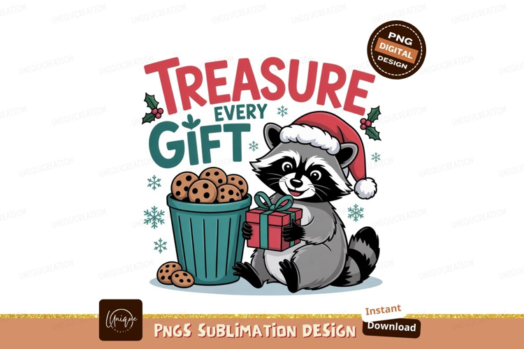Christmas Gift Santa Hat Red Moon Cookies Lantern Raccoon Drooling