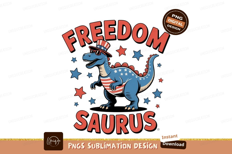Patriotic dinosaur wearing hat and sunglasses freedom example image 1