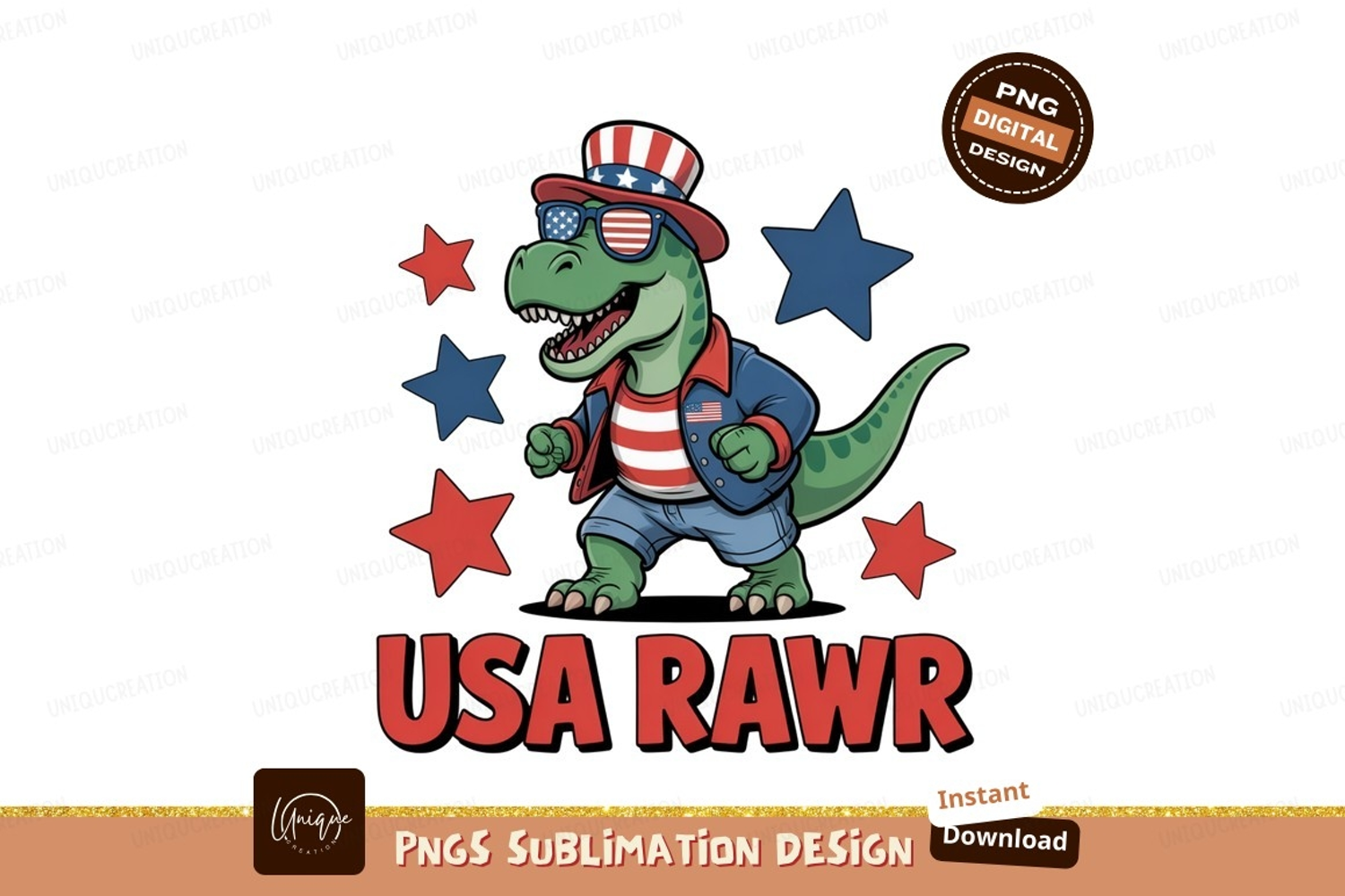 Patriotic dinosaur wearing american flag attire stars example image 1