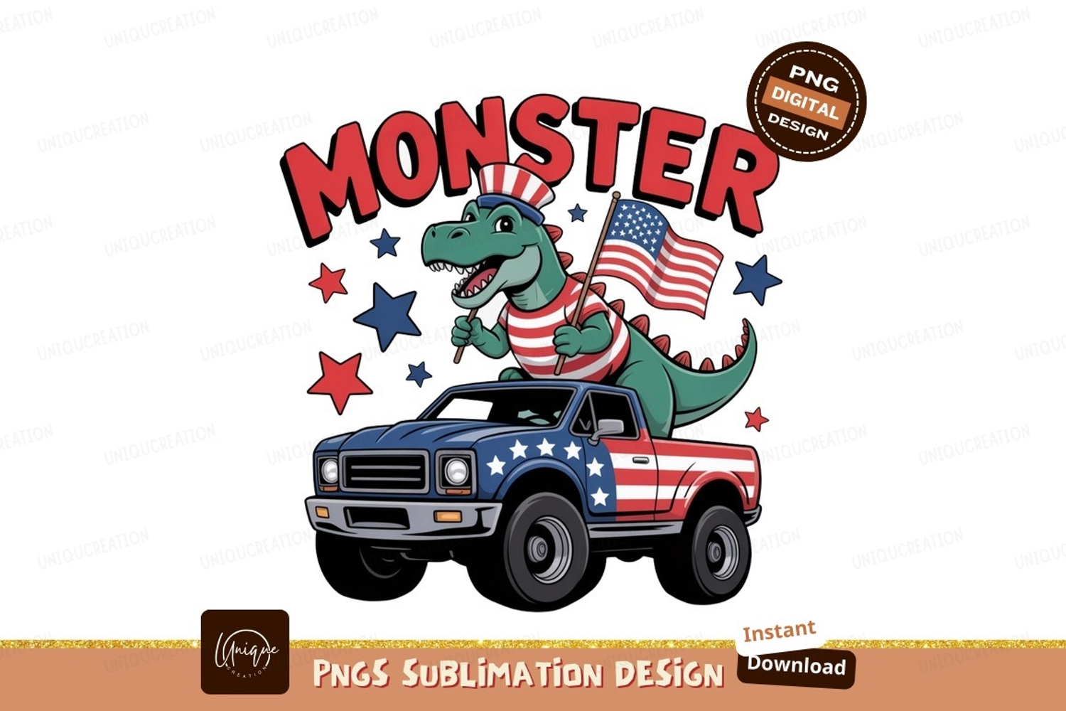 Dinosaur driving truck american flag patriotic example image 1