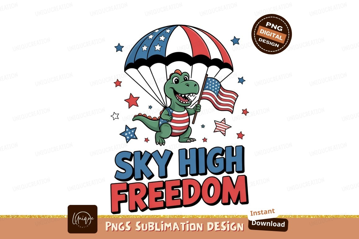 Format: Title: Dinosaur Parachute Flag Patriotism american