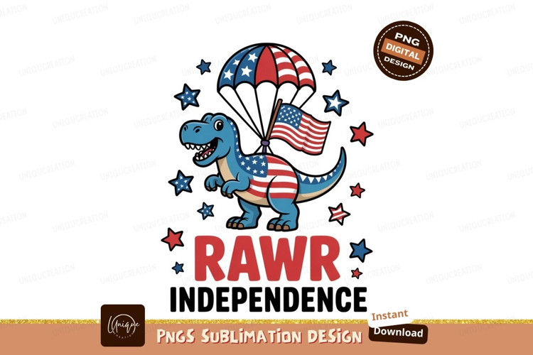 American Blue White Red Flag Stars Dinosaur Umbrella Hotdog Drooling