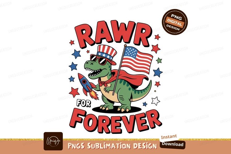 Dinosaur patriotic celebration american flag example image 1