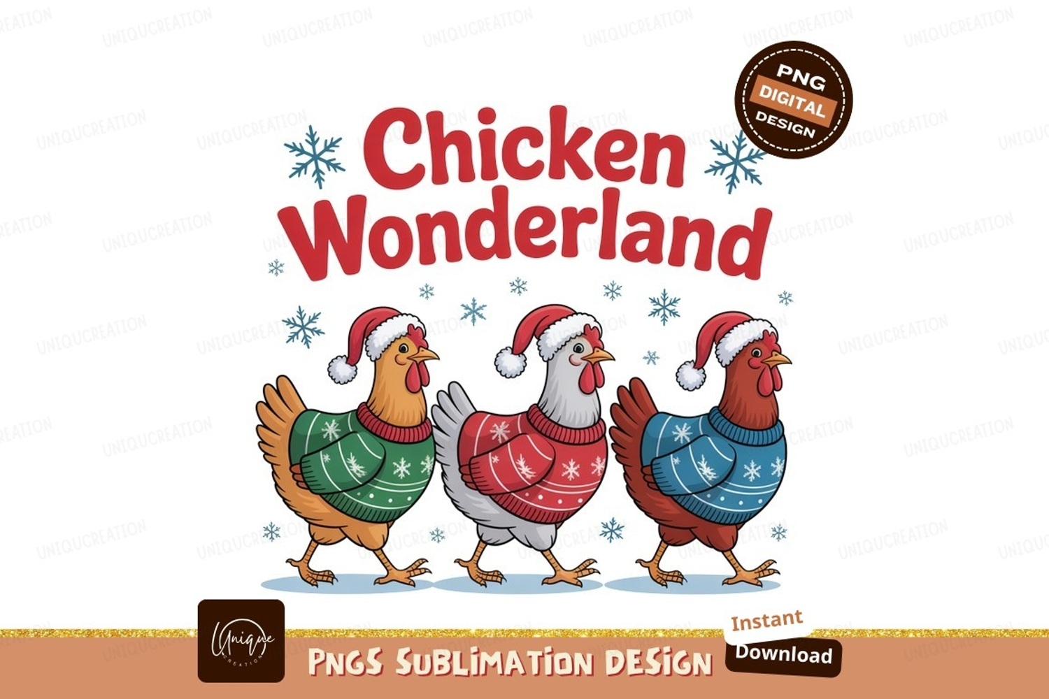 Similar Design Products to Festive chickens wearing santa hats and sweaters image