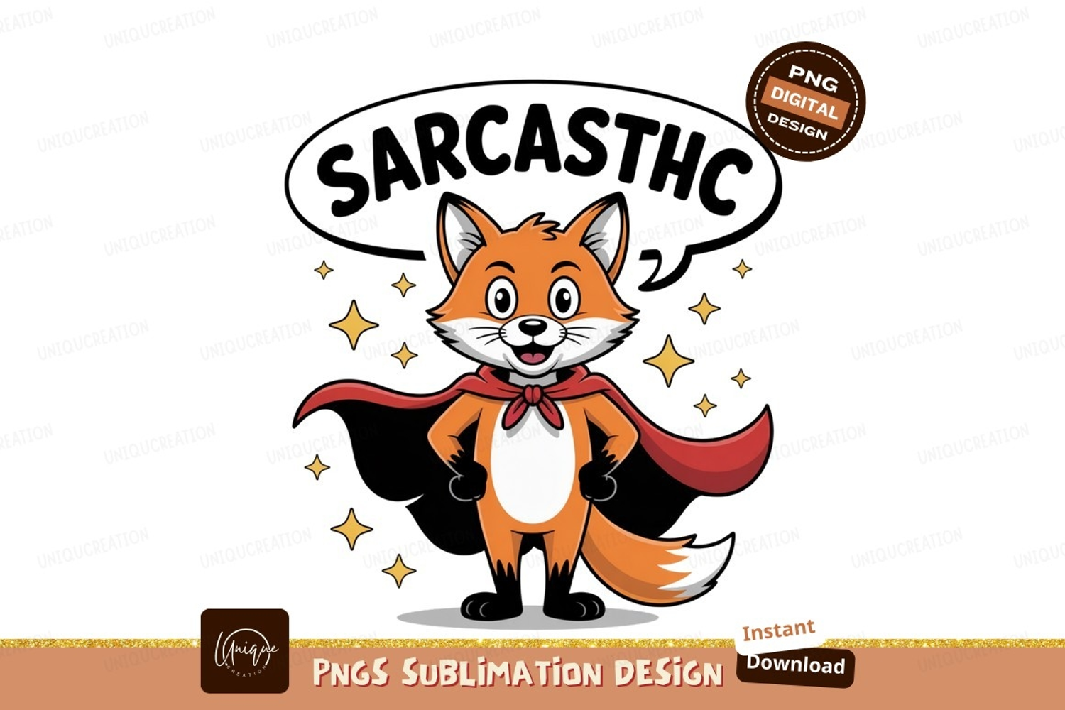 Orange fox superhero cape stars white black