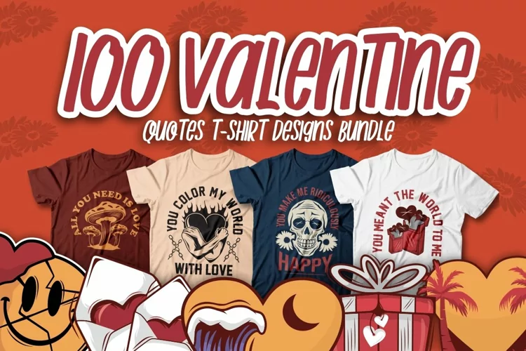 Get this stunning bundle with unique Valentine Quotes designs! Perfect for t-shirt printing and other types of merchandise