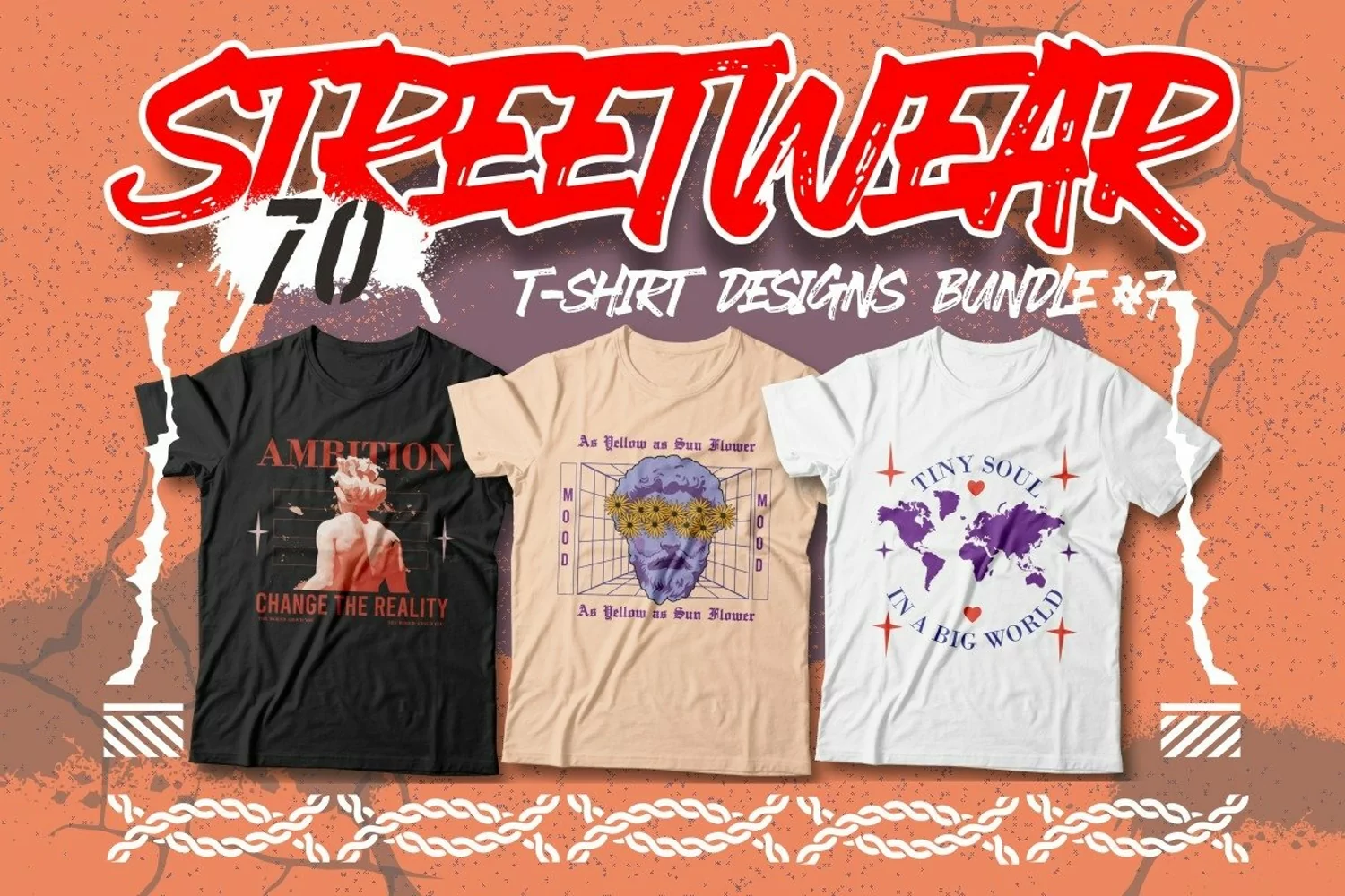 Get this stunning bundle with unique streetwear designs! Perfect for t-shirt printing and other types of merchandise