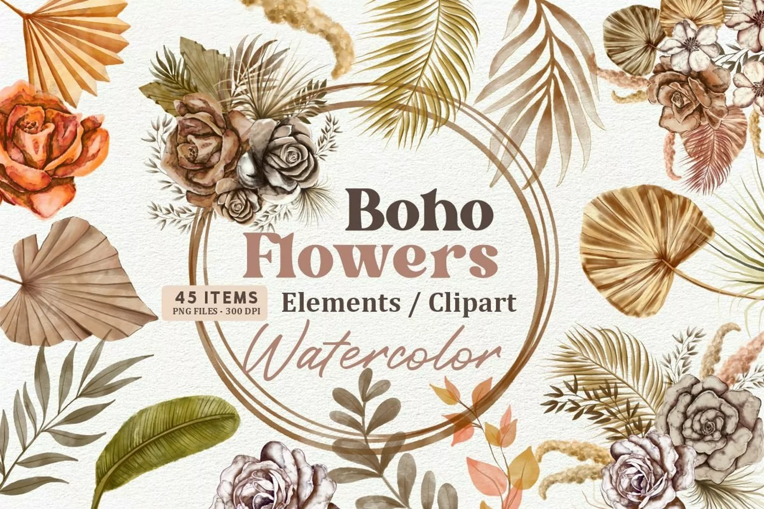 Similar Design Products to Boho Flowers Watercolor Clipart Elements Bundle