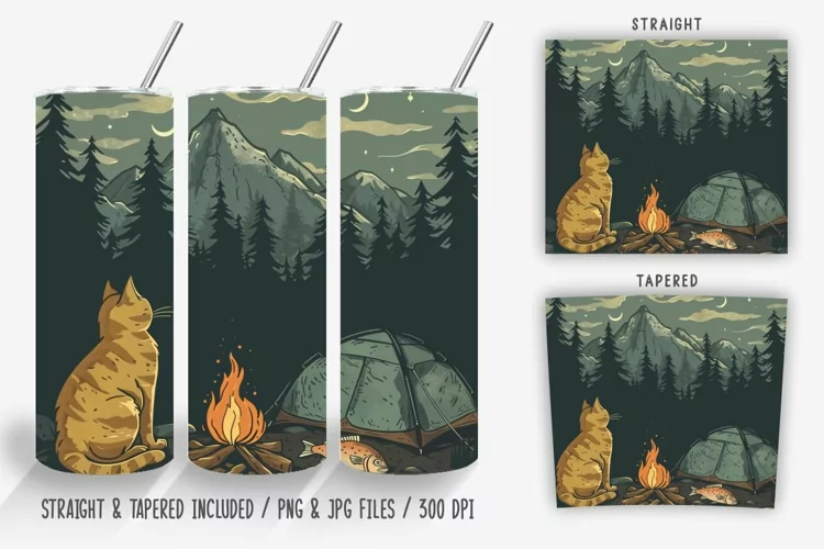 Campfire Forest Cat Tumbler Wrap PNG