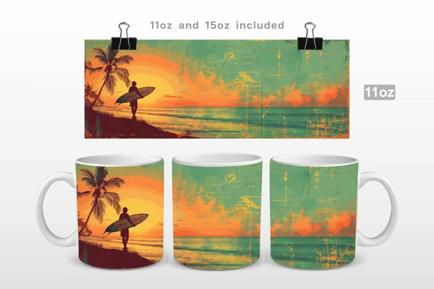 Surfer Tropical Summer Retro Summer Retro Sunset Paradise Beach Sunset Beach Surfing Sublimation Mug Wrap Sublimation 11oz Mug Wrap Summer Mug Wrap
