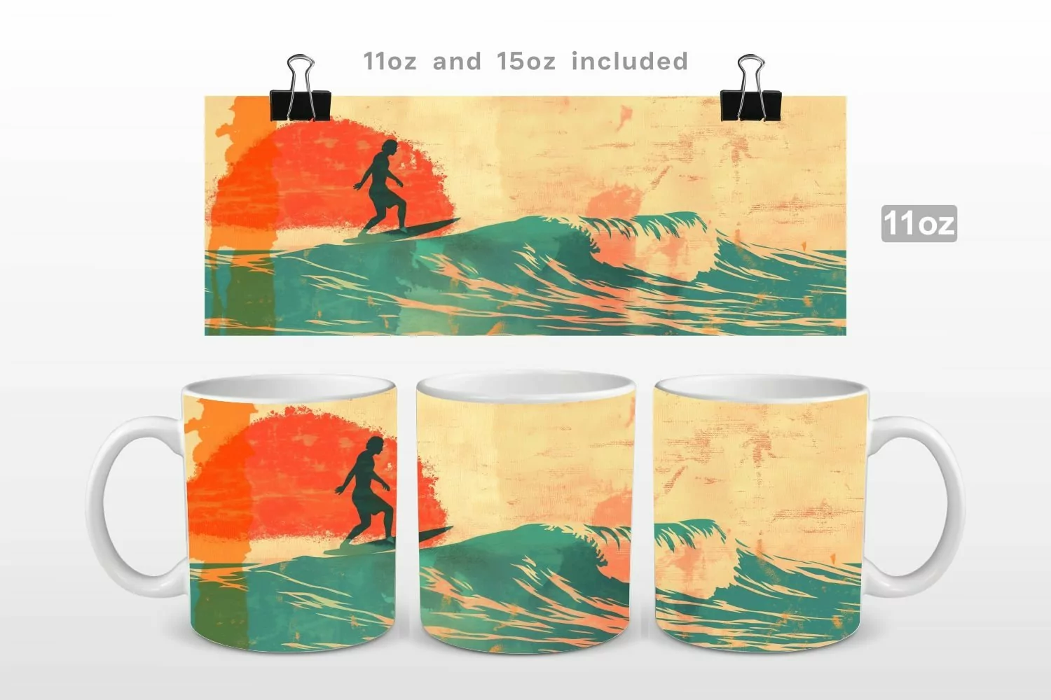 Similar Design Products to Retro Surfing Sunset Mug Wrap PNG