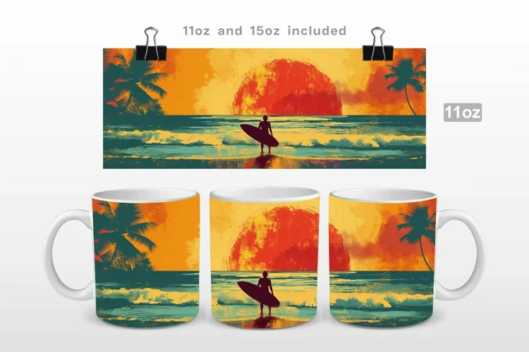 Surfer Tropical Summer Retro Summer Retro Sunset Paradise Beach Sunset Beach Surfing Sublimation Mug Wrap Sublimation 11oz Mug Wrap Summer Mug Wrap