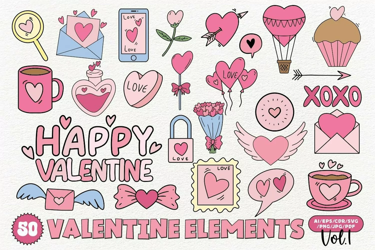 Valentine Valentines Day Valentine Clipart Pink Valentine Valentine Elements Valentine Bundle Valentine Elements Bundle Cute Valenetine Valentine Vector Set Valenmtine Png Bundle