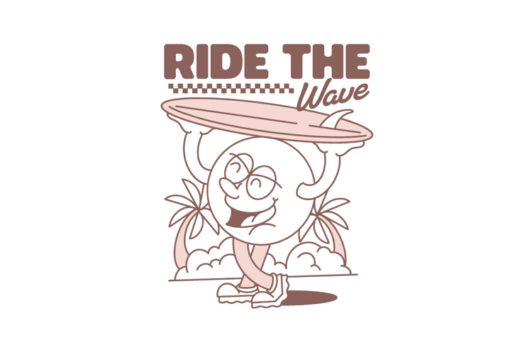 Retro Summer Surf Club Surfing T-shirt Design Surfing Vector Paradise Beach Ride The Wave Summer Surfing Vacation T-shirt Design Retro Cartoon Character Groove Cartoon