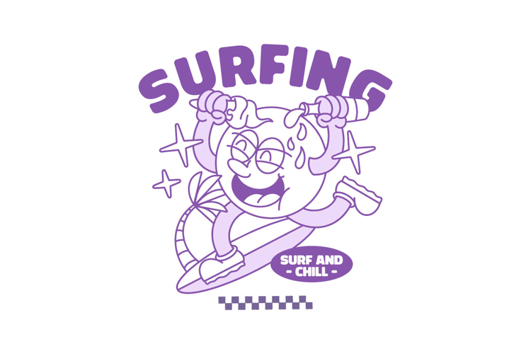 Surfing Retro Summer Surf Club Surfing T-shirt Design Surfing Vector Paradise Beach Summer Surfing Vacation T-shirt Design Retro Cartoon Character Groove Cartoon
