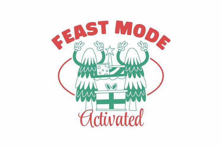 Ready To Eat Funny Christmas Graphic Feast Mode Activated Christmas Dinner Tee Holiday Eating Shirt Festive Food Design Winter Party Apparel Eating Mode On Holiday Feast Typography Big Appetite Shirt